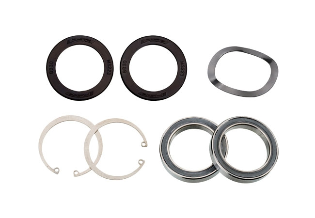 Im Lieferumfang: 2 FSA Lager, 2 Sprengringe, 1 Wellenscheibe, 2 Spacer