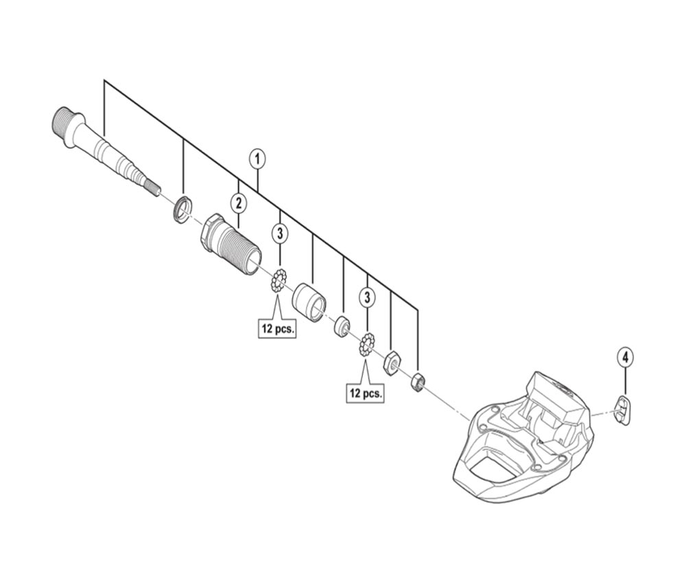 Die Shimano Rennrad Ultegra SPD Ersatzachse mit Lagereinheiten, im Lieferungfang Position 1.