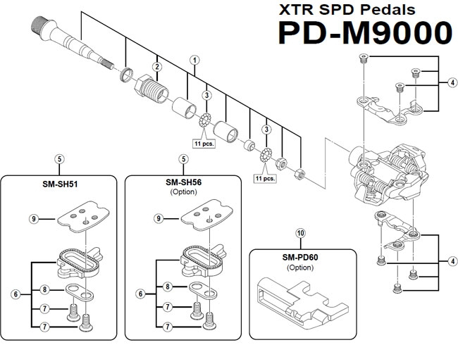 Shimano PD-M980 / M9000 / M9020 Ersatzteil – Pedalachse Komplett Links