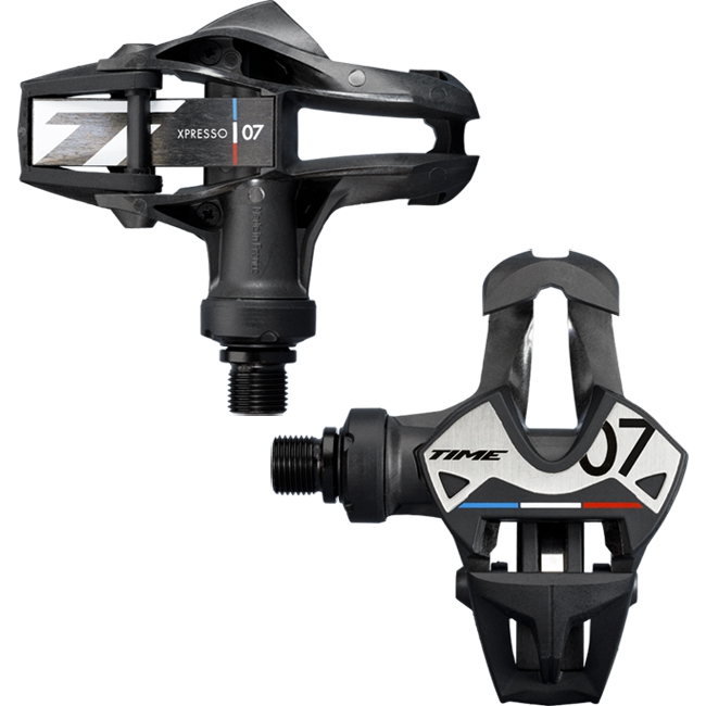 Die Xpresso 7 Pedale mit Carbon Koerper, sehr leicht und trotzdem preiswert. Time XPresso Pedale, die Weiterentwicklung mit 40 Prozent groesserer Aufstandsflaeche als bei den Time Iclic Modellen, Carbonblade Feder und Pre-Opening System. Ausgestattet mit Stahlpedalachse und Carbon Pedalkoerper